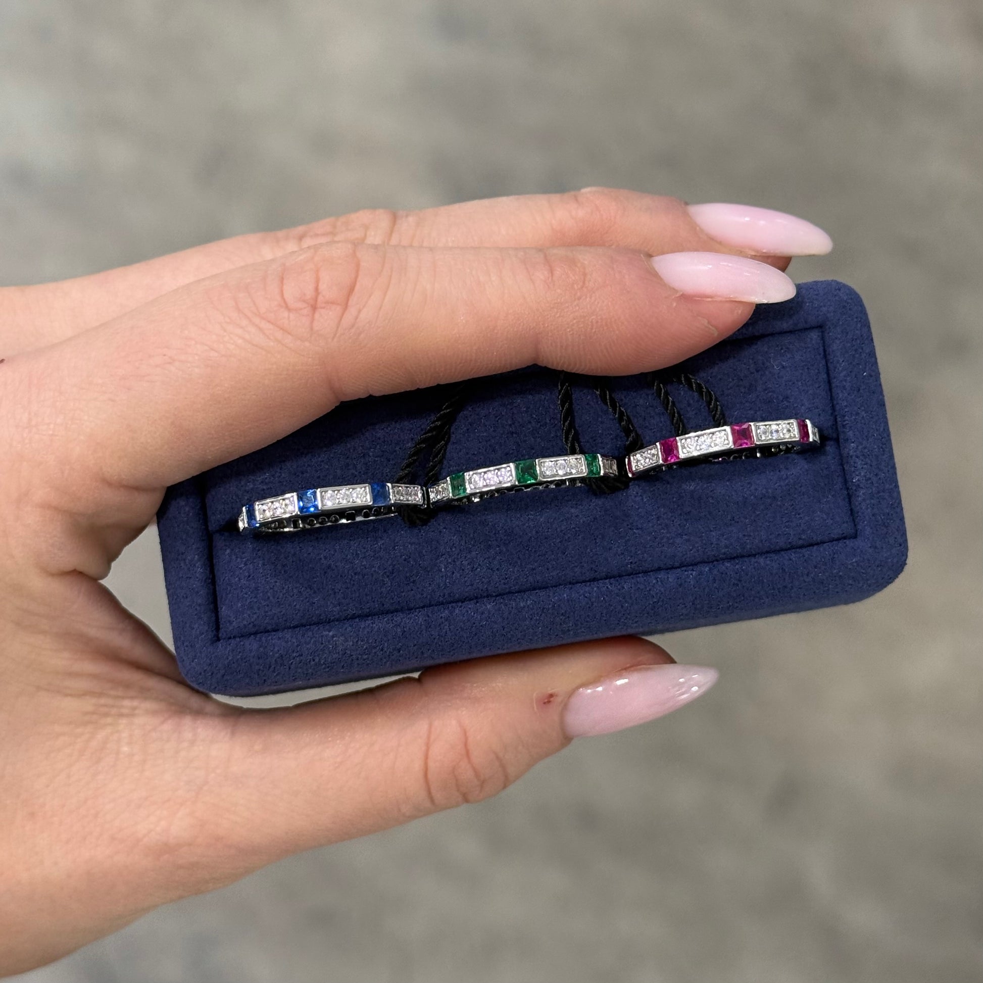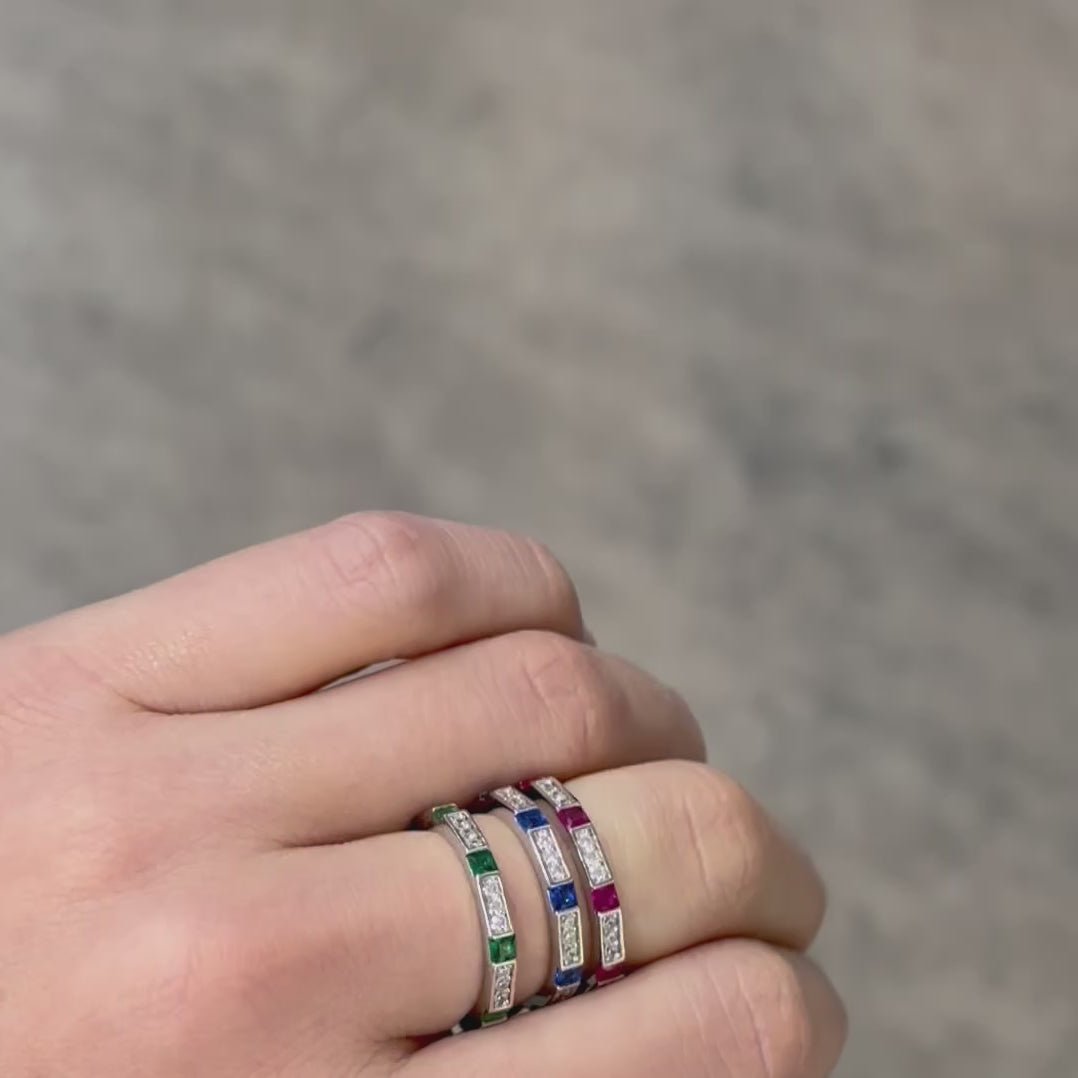 - Decorato con zirconi bianchi e nei colori dello smeraldo, zaffiro e rubino