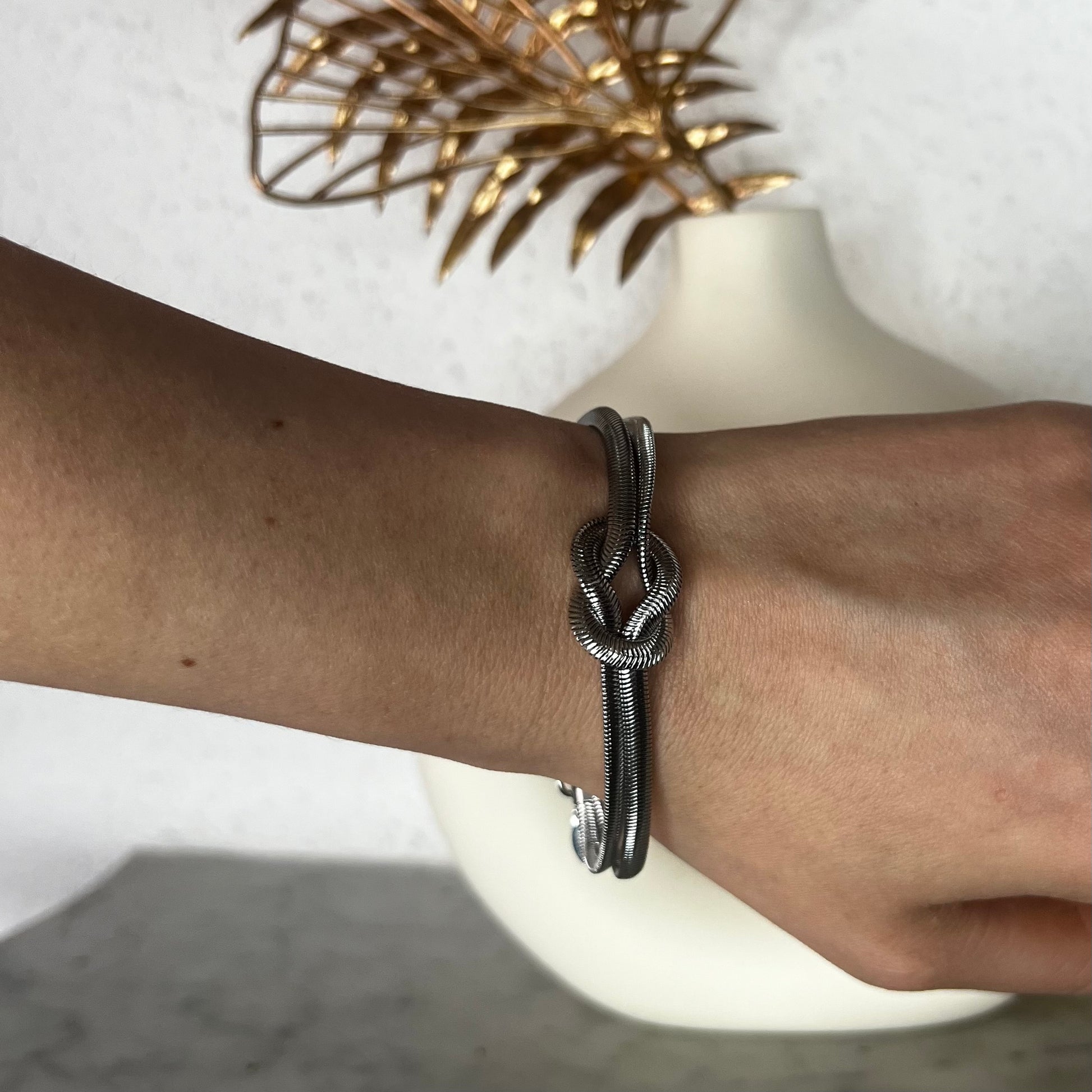 Vuoi un look iconico senza sforzo? Ecco i nostri CELINE. Bracciale costruito con maglia snake piatta che nel centro forma un elegante nodo. Minimal e adatto ad essere abbinato ad altri bracciali, da indossare ogni giorno nella variante che più preferisci oro o argento.