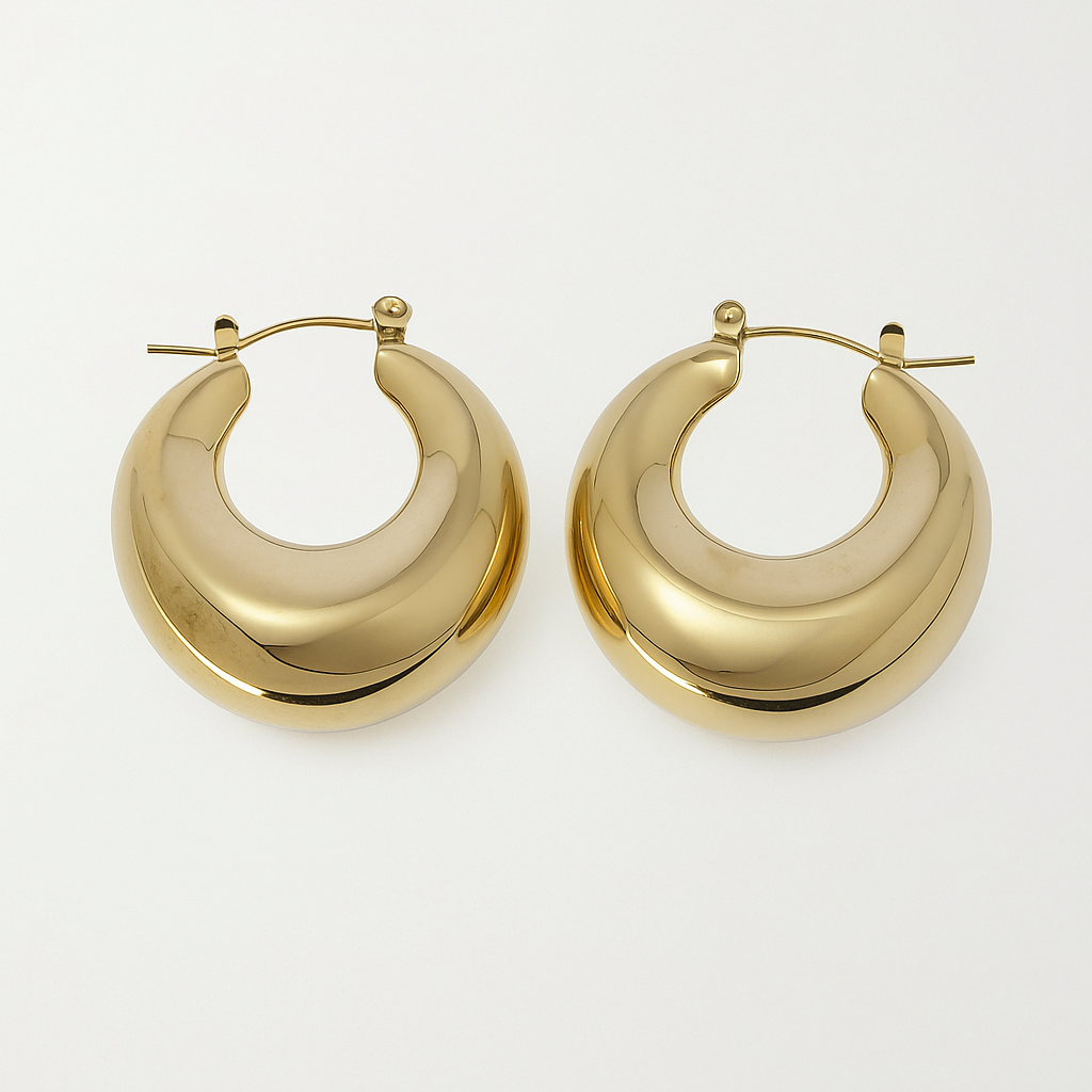Con la loro forma a cerchio schiacciato e la finitura ultra lucida, gli orecchini Cloe sono la definizione perfetta di statement piece. Bold ma portabili, donano luce e carattere a qualsiasi look, dal più semplice al più sofisticato.