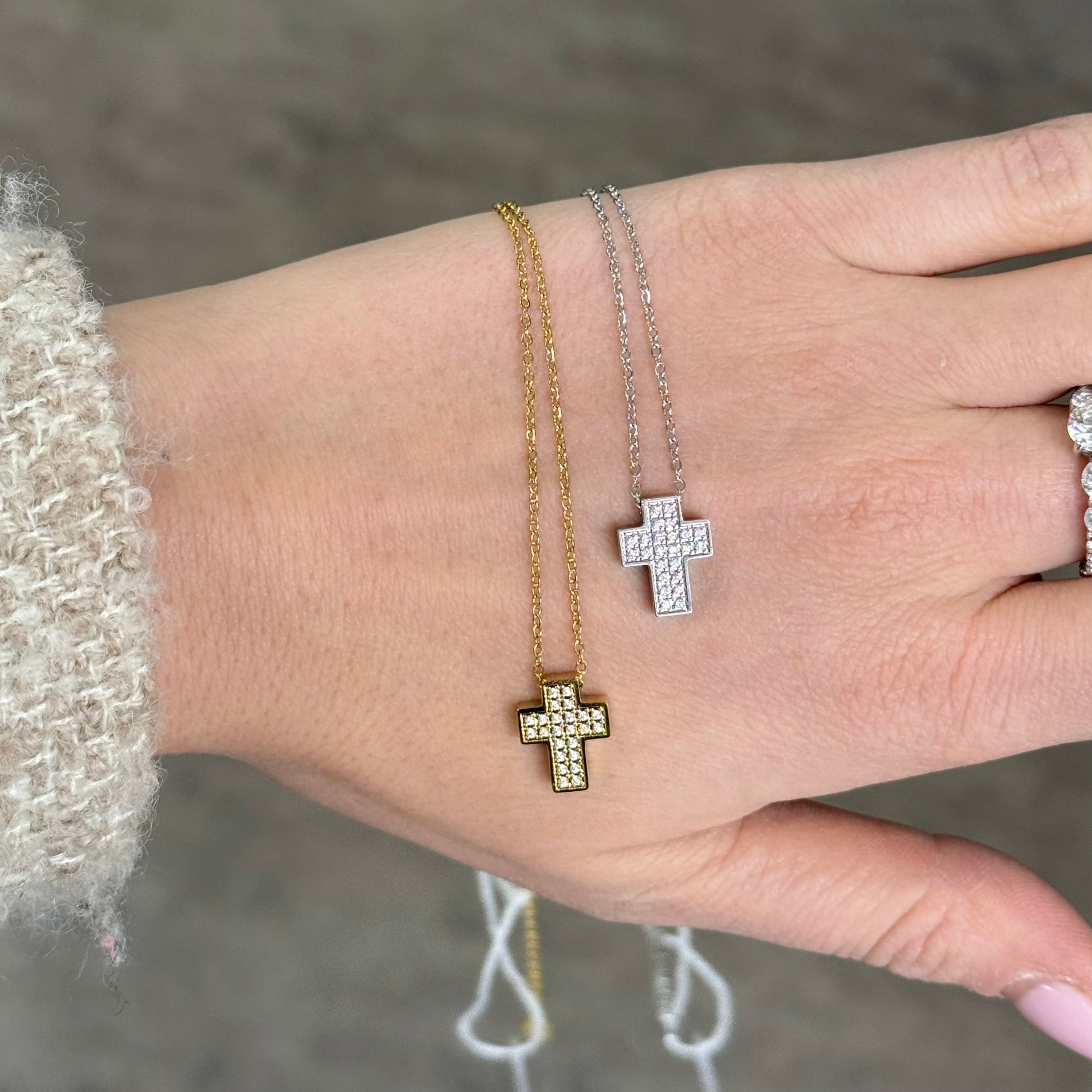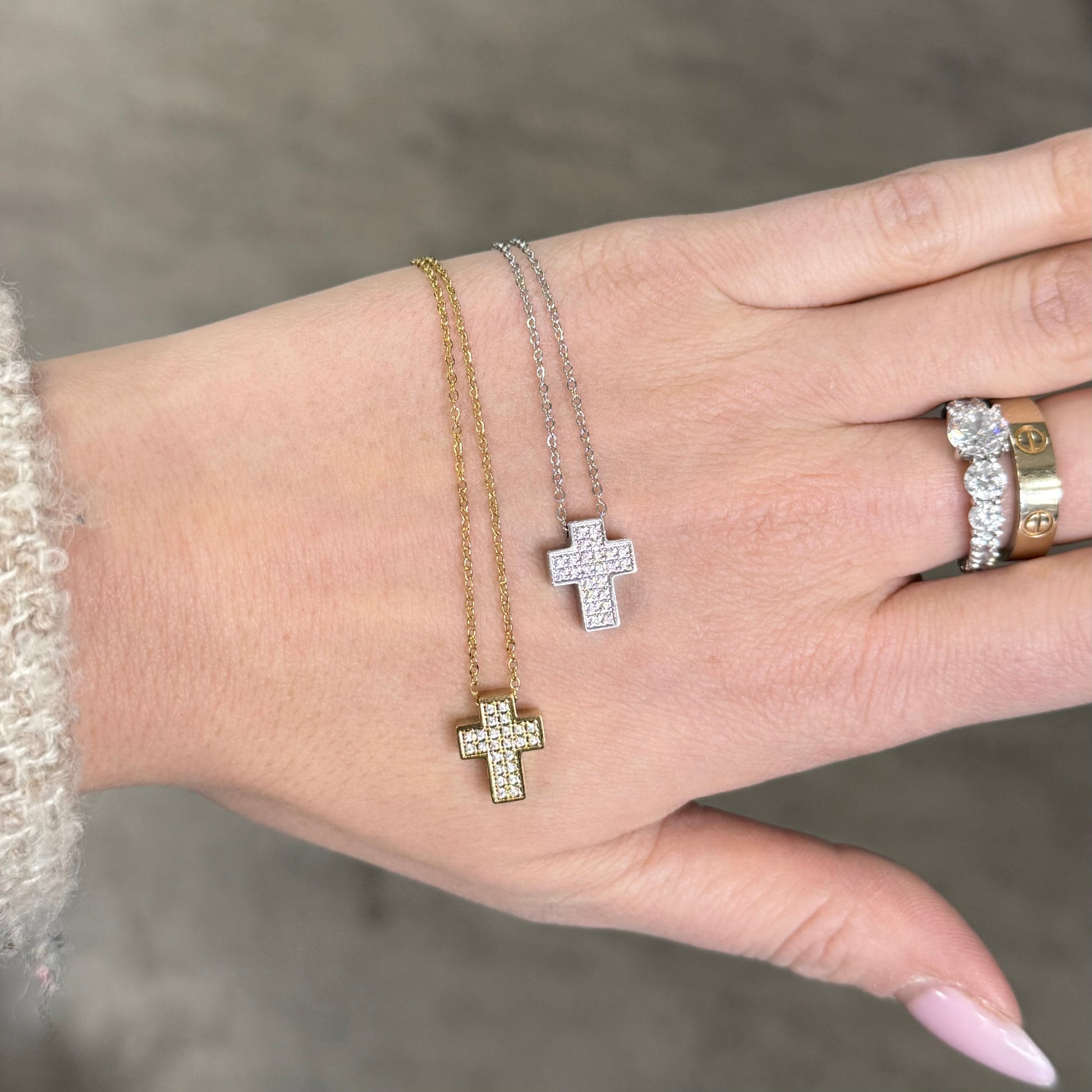 Collana in Acciaio color argento o placcata oro con zirconi taglio brillante