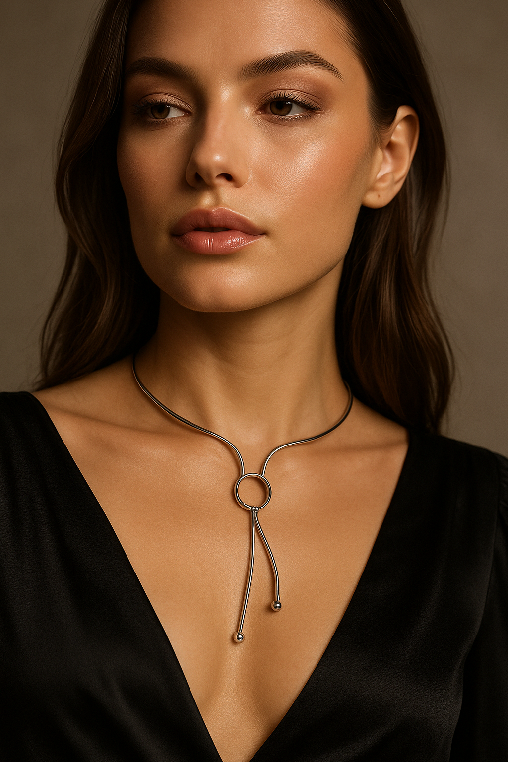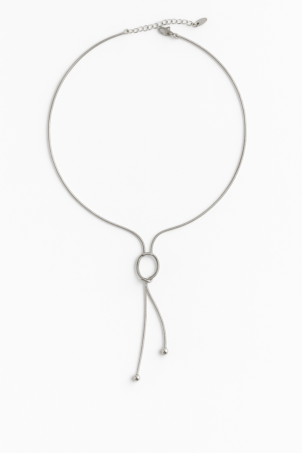 Con il suo design regolabile e la finitura lucida a serpentina, Elodie scivola con delicatezza sul décolleté, impreziosita da un nodo centrale e due estremità pendenti. Un gioiello essenziale e versatile, perfetto da indossare ogni giorno con stile. Disponibile nelle versioni argento e oro.