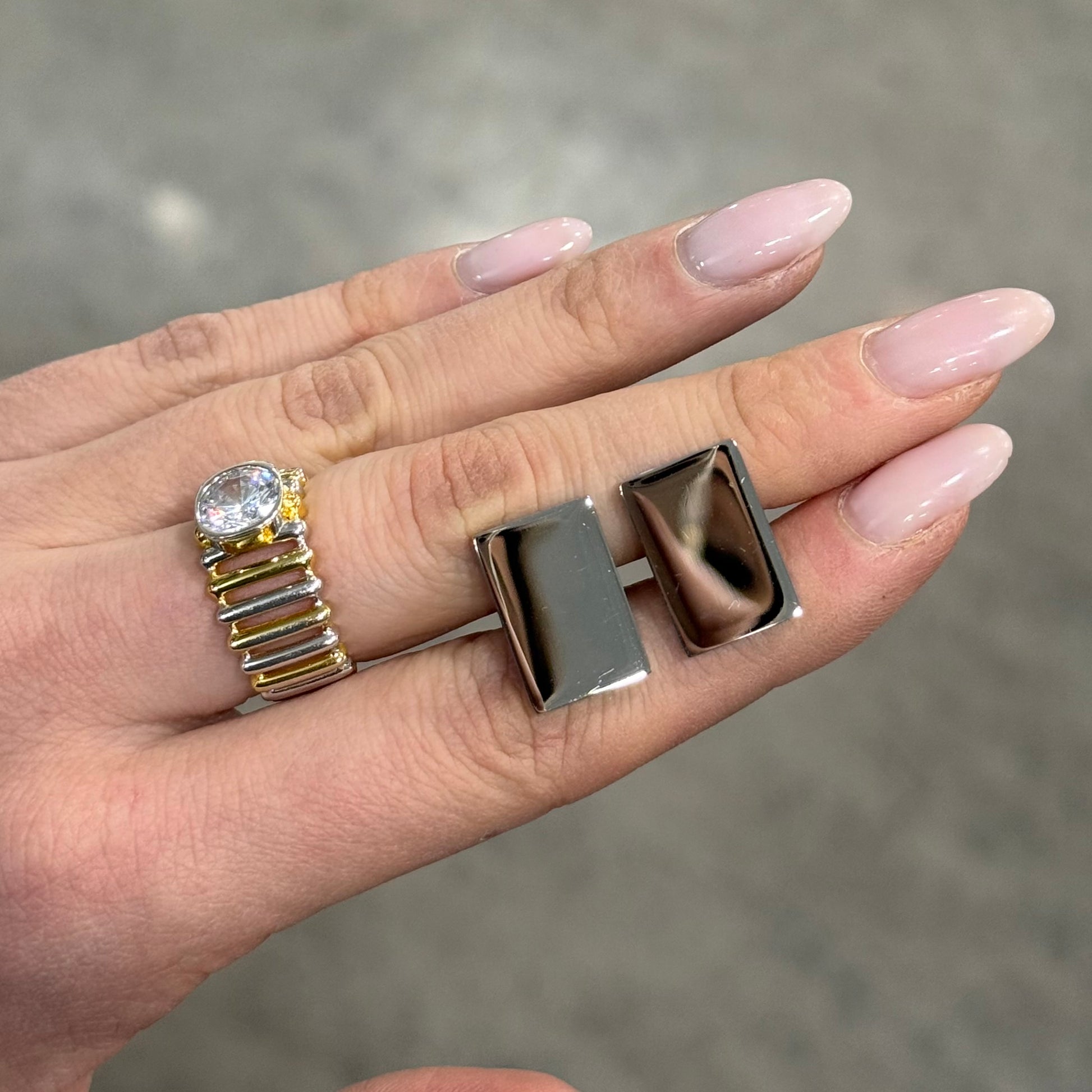 Gemelli in acciaio, forma rettangolare e superficie liscia indicata per l’incisione.