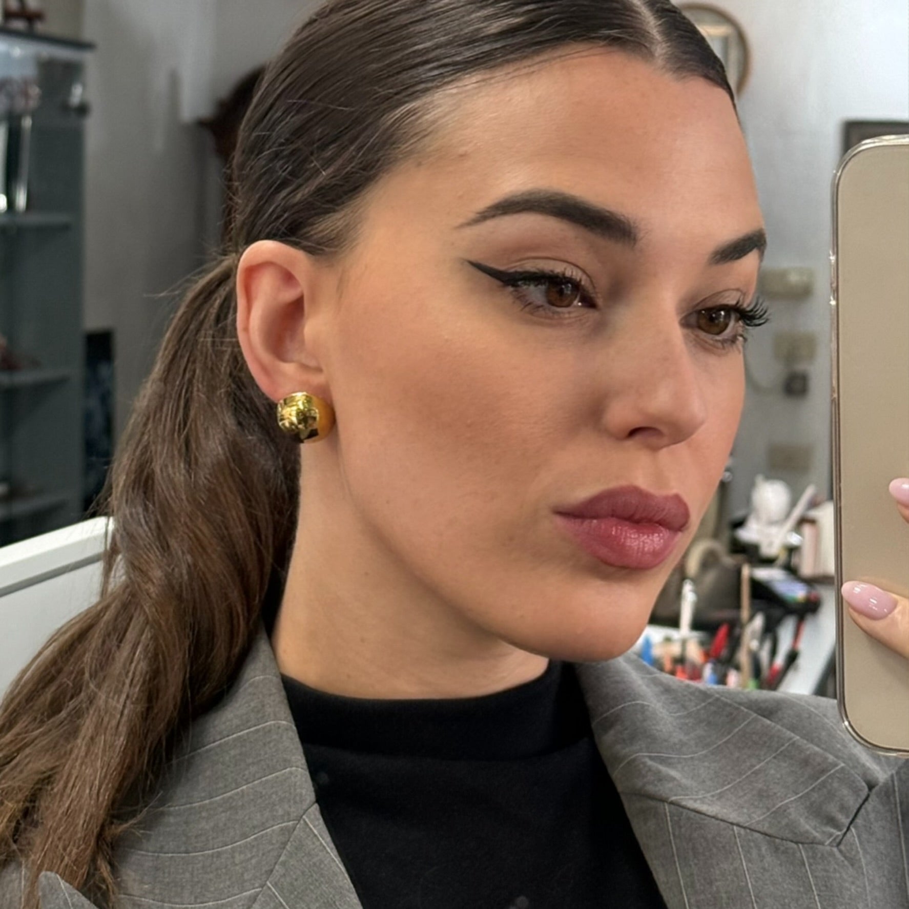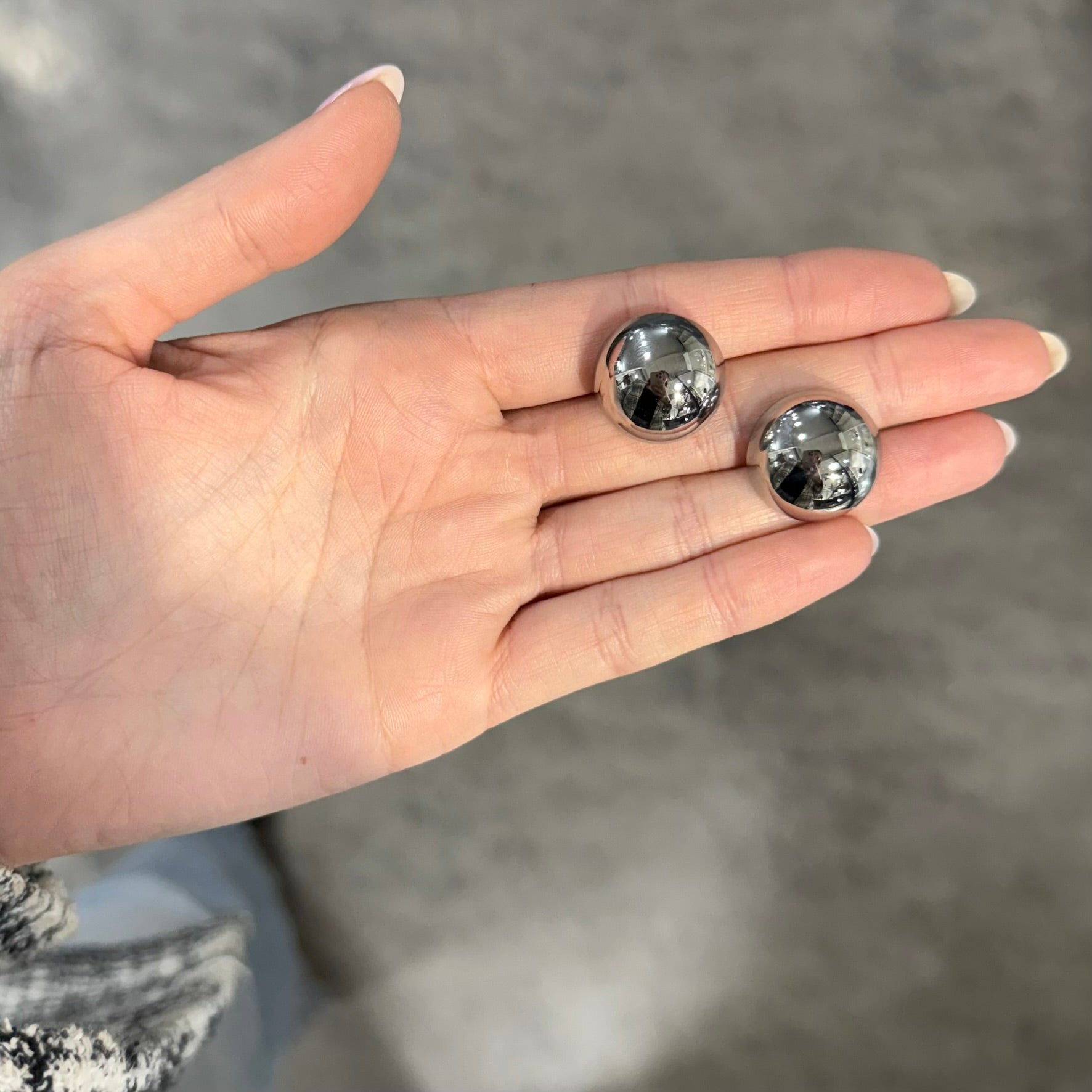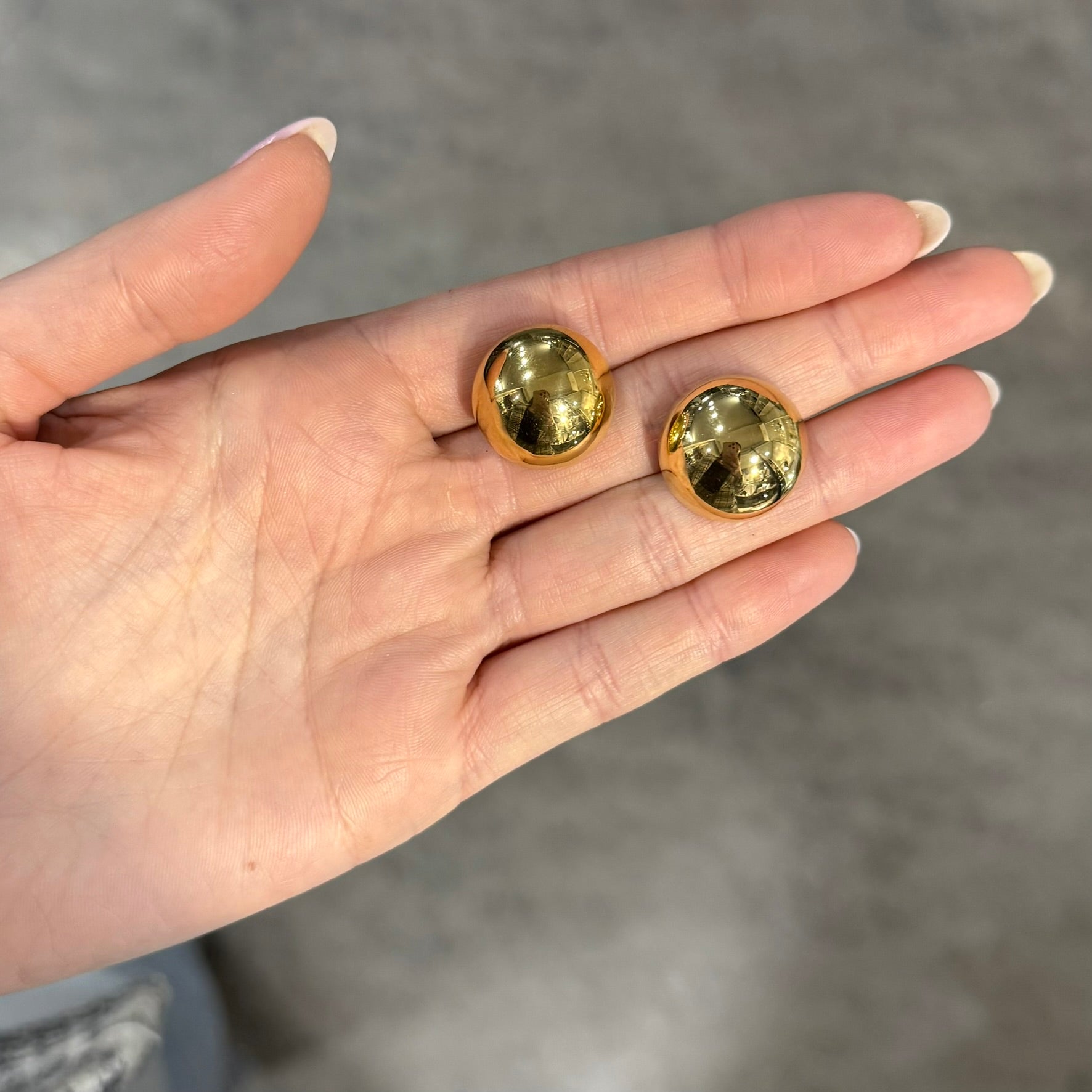 Con il loro design tondeggiante e la finitura ultra lucida, questi orecchini sferici da 20 mm di diametro aggiungono un tocco contemporaneo e sofisticato al tuo stile. Perfetti per essere indossati da soli o mixati con altri piercing, sono un must-have per ogni outfit, dal casual al più elegante.