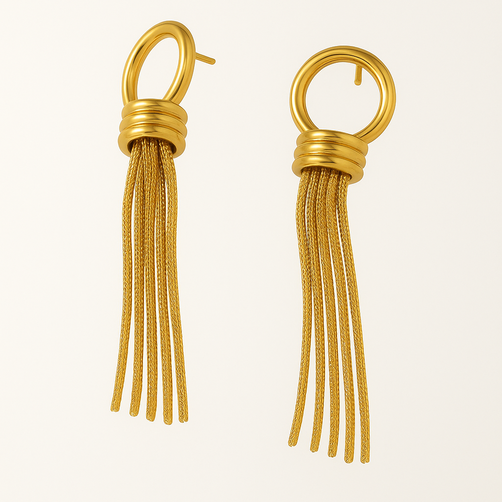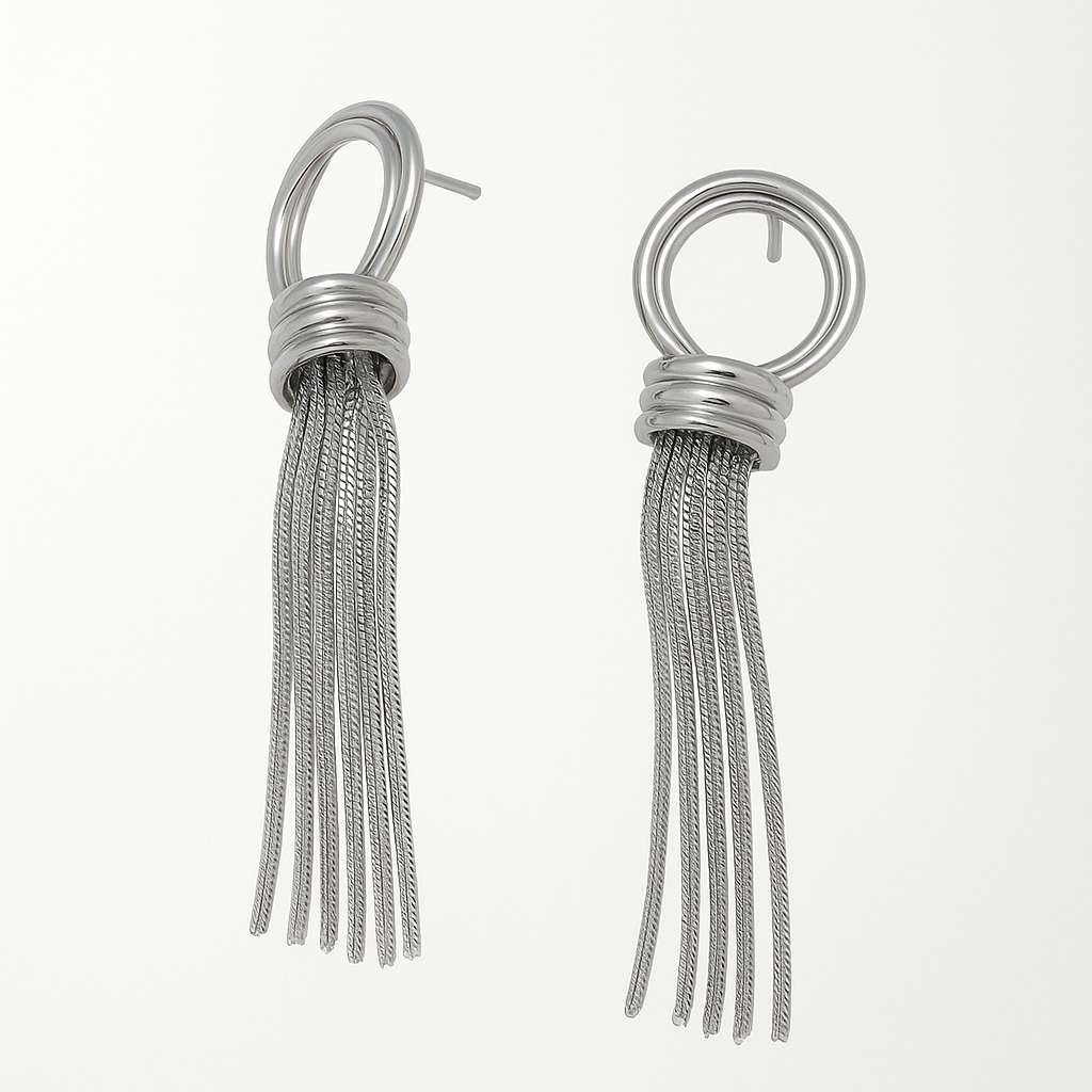 Caratterizzati da un originale motivo ad anello intrecciato e da una cascata di catene mobili, gli orecchini Venere uniscono eleganza e dinamicità. Leggeri ma d’effetto, sono ideali per la sera, per eventi speciali o per dare carattere anche a un outfit essenziale.